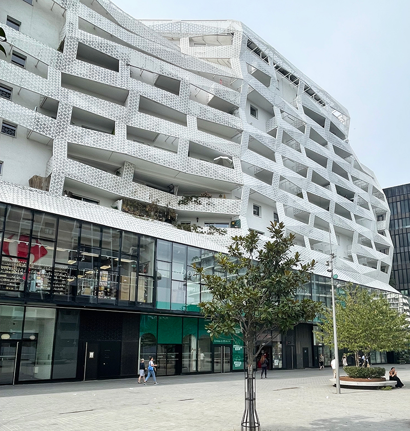 Livrés en 2018, ces logements familiaux sociaux réalisés par l’agence Saison Menu & Associés se singularise par leur double peau en métal perforé blanc pliée en origami....
