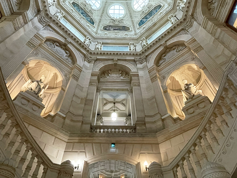 Réalisé par l’architecte Antoine-Nicolas Bailly, le Tribunal de Commerce de Paris est un bâtiment de style éclectique doté d'un remarquable escalier à volée double coiffé d'un dôme....