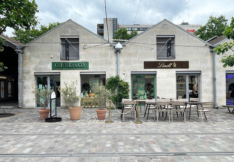 Lors de la création du centre commercial Bercy Village, la cour Saint Emilion, vestige des anciens chais, est le seul ensemble de pavillons conservés avec les pavillons de Bercy. Les pavillons en pierre sont mitoyens, dotés de deux ouvertures pour faciliter le passage des tonneaux. Lors de leur rénovation entre 1995-2000, les architectes Denis Valode et Jean Pistre doublent la profondeur des pavillons sur leur façade arrière donnant rue des Pirogues de Bercy et rue François Truffaut. Au fond de l’allée de la cour Saint-Emilion, le multiplex UGC Bercy (1998) est également l’œuvre de Denis Valode, Jean Pistre avec Alberto Cattani.