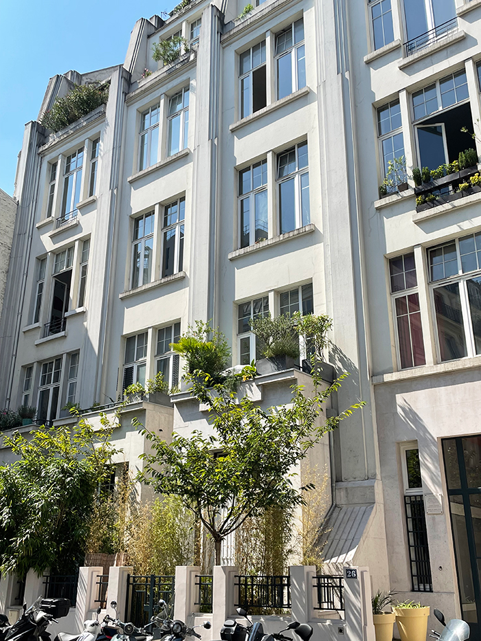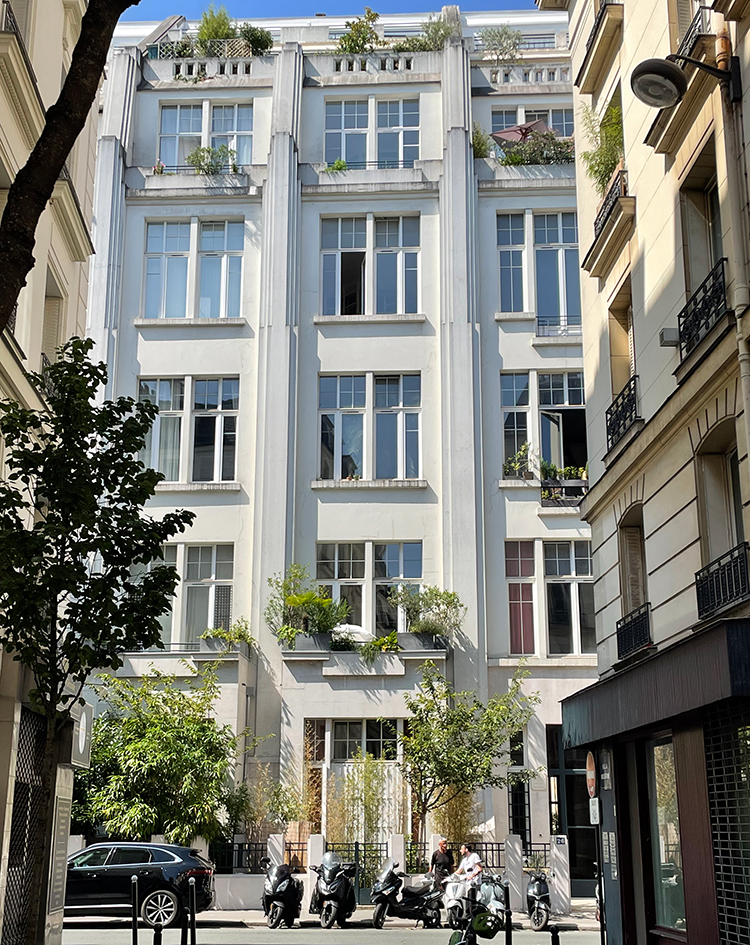 Ce bel immeuble aux lignes Art déco est réalisé en 1930 par l’architecte S. Dessauer. Il est composé d’ateliers d’artistes organisés en duplex : l’atelier est en partie basse tandis que chambre et cuisine sont situés en mezzanine. Chaque atelier est éclairé par des baies de double hauteur. Les derniers niveaux sont disposés en gradins et jouissent de jardins suspendus.