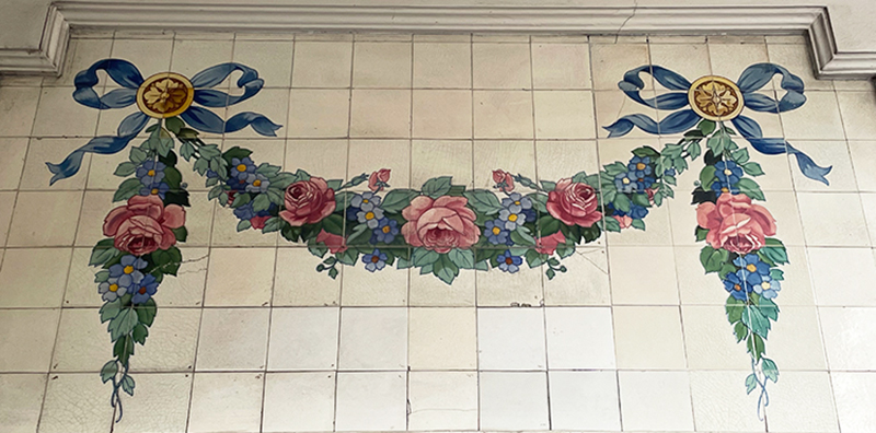 Immeuble mixte avenue de Flandre : panneaux de céramique sous le porche