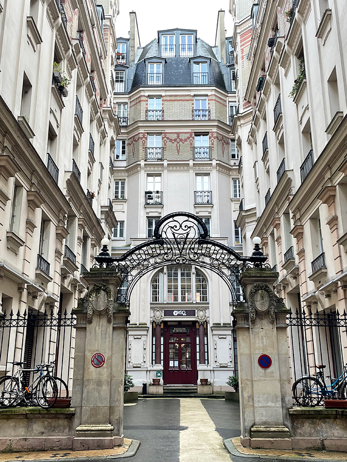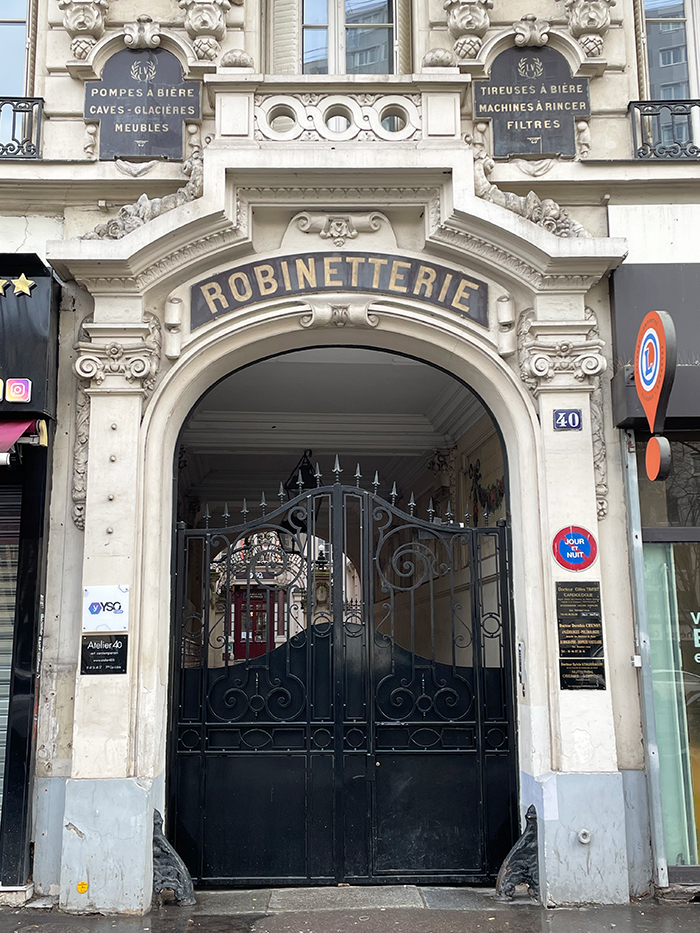 Immeuble mixte avenue de Flandre : la grille et les locaux commerciaux en fond de cour