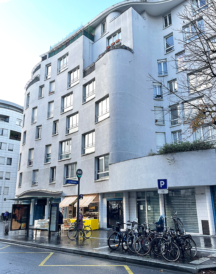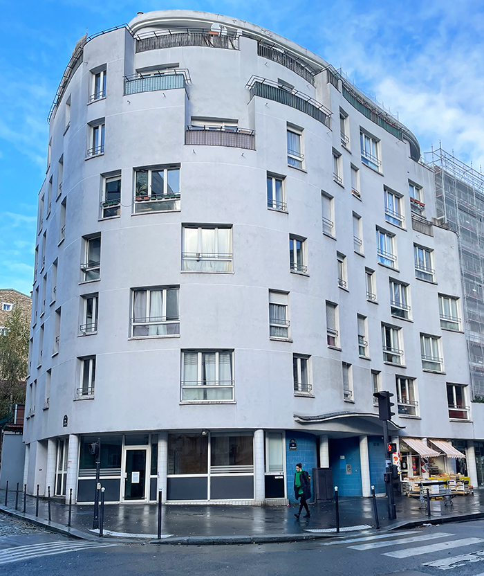 Rue de Bagnolet, André Bruyère livre son dernier bâtiment construit. Placé à l’angle de la rue de Bagnolet et de la rue de la Réunion, l’immeuble de logements est composé suivant un savant jeu de courbes et d’ouvertures. Selon la volonté de son auteur, la « maison » comporte 23 logements tous différents. Une coursive sur cour dessert les appartements.