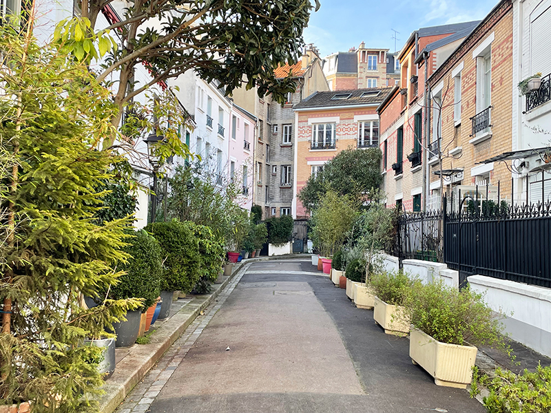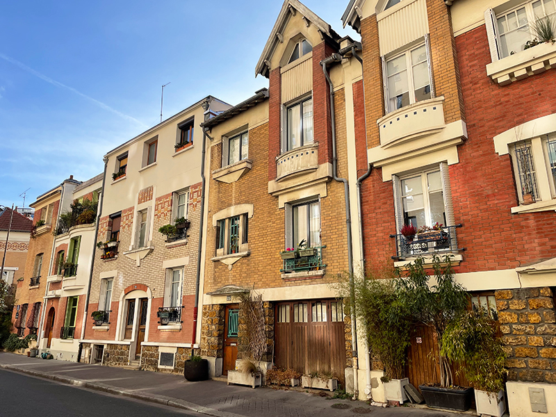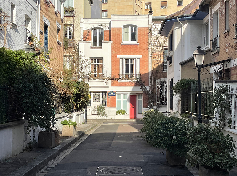 Les maisons donnent sur des rues portant toutes des noms de fleurs : rue des Glycines, des Volubilis, des Orchidées, des Iris, des Liserons. C’est un lieu enchanteur, calme et verdoyant, où la circulation automobile est proscrite.