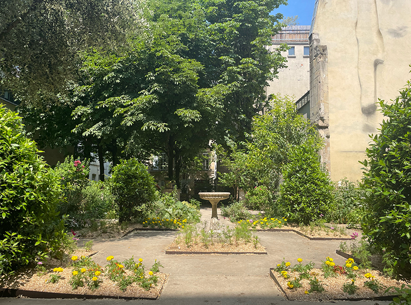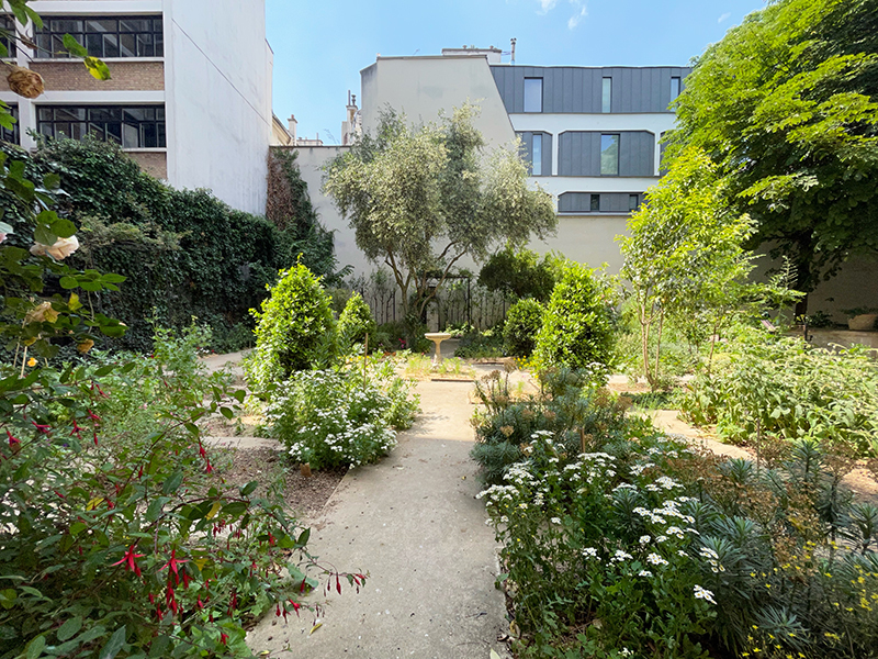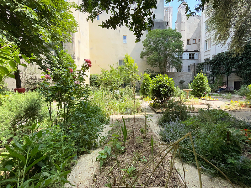 Le jardin possède également un potager cultivé en jardin partagé par les habitants du quartier. C’est un lieu paisible, idéal pour bouquiner ou se reposer sur les bancs mis à disposition.