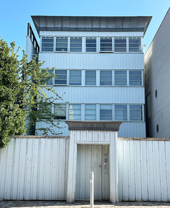 Rue Poli (n°29), passage obligé par la maison construite par le designer Philippe Starck pour le publicitaire Bruno Le Moult en 1987. Surnommée le « Sphinx à deux faces », elle présente sur chacune de ses deux (étroites) façades vitrées deux escaliers parallèles, semblables aux deux pattes d’un Sphinx. Sa voisine (n°27), à peine plus récente (1991), est signée du même auteur ; elle abritait à l’origine les bureaux du même publicitaire. Cette fois-ci, l’ambiance est plutôt marine (ou fluviale au choix) avec des fenêtres en bandeaux horizontaux et des petits postes d’observation en saillie aux angles. A l’intérieur, parquets, murs et plafonds en acajou illustrent le style « bateau » de la maison. Le toit aménagé en terrasse doit offrir une vue assez démente sur la ville, le parc de Saint-Cloud et la forêt de Meudon…