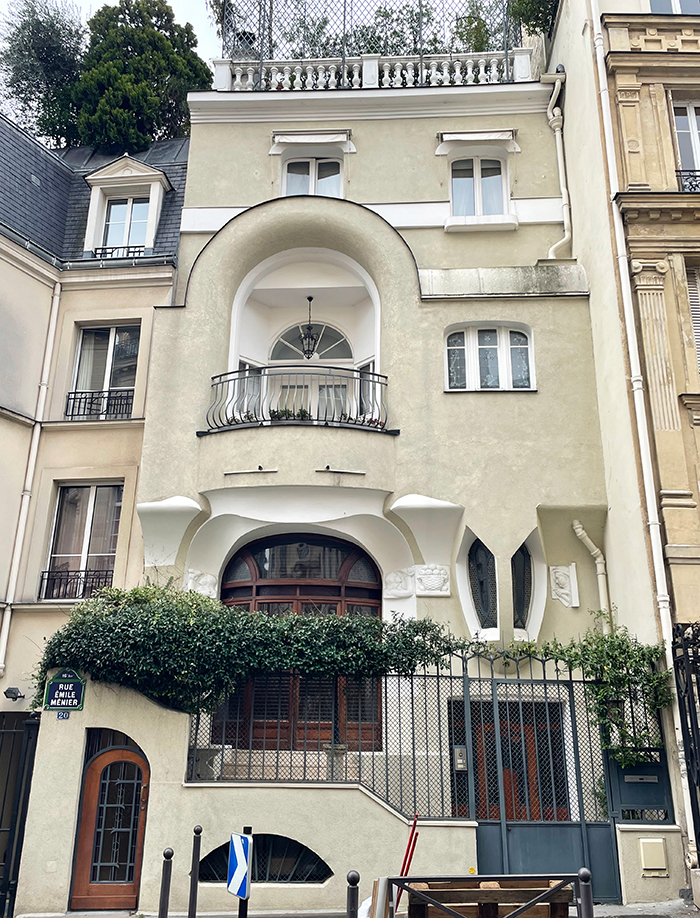 Vers 1910, l’architecte Edouard Autant (1872-1964) réalise pour lui-même cet hôtel particulier dans un style encore Art nouveau mais qui annonce déjà l’Art déco. A cause de l’étroitesse de la parcelle, l’édifice ne comporte que deux travées. Chaque niveau se distingue par des ouvertures différenciées par leur forme et leur taille. Les ouvertures du rez-de-chaussée se attachent par leur fantaisie à l’Art nouveau, tandis que la loggia comprise dans une arcade cintrée au 1er étage affirme déjà le style plus sage de l’Art déco