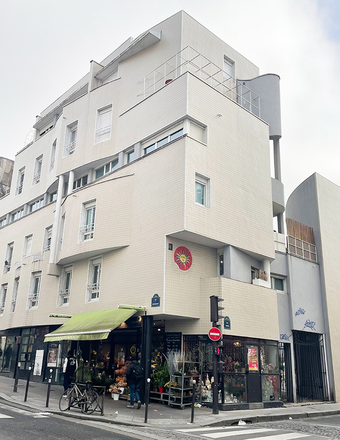 La complexité de cet immeuble de logements sociaux livré en 1986 tranche radicalement avec l’architecture trop souvent banale des tours et des grands ensembles qui a prévalu dans les années 1960 et 1970. L’architecte Henri Gaudin et sa collaboratrice Isabelle Marin conçoivent ici un des immeubles les plus emblématiques des années 1980 dans une approche sensible de la complexité du tissu urbain.