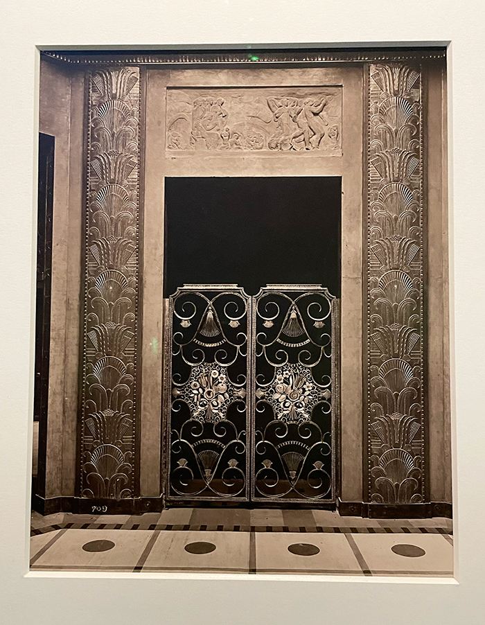 L’exposition présente en photos le travail des plus grands architectes français à travers le ou les pavillons signés par eux. Robert Mallet-Stevens s’impose d’emblée avec son spectaculaire Pavillon du Tourisme et des renseignements. Pierre Patout y triomphe avec son pavillon du Collectionneur, l’un des plus visités, présentant à l’intérieur des décors et du mobilier de Jacques-Emile Ruhlmann. Henri Sauvage, Albert Laprade et Joseph Marrast y rivalisent d’une élégance plus « classique ». Les bas-reliefs d’Henri Navarre pour le pavillon du journal l’Intransigeant réalisé par Henri Favier sont une merveille… sans oublier les ferronneries d’Edgar Brandt pour la « galerie des Ensembles mobiliers ».